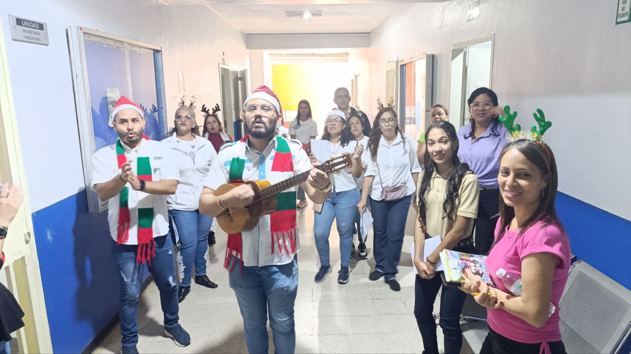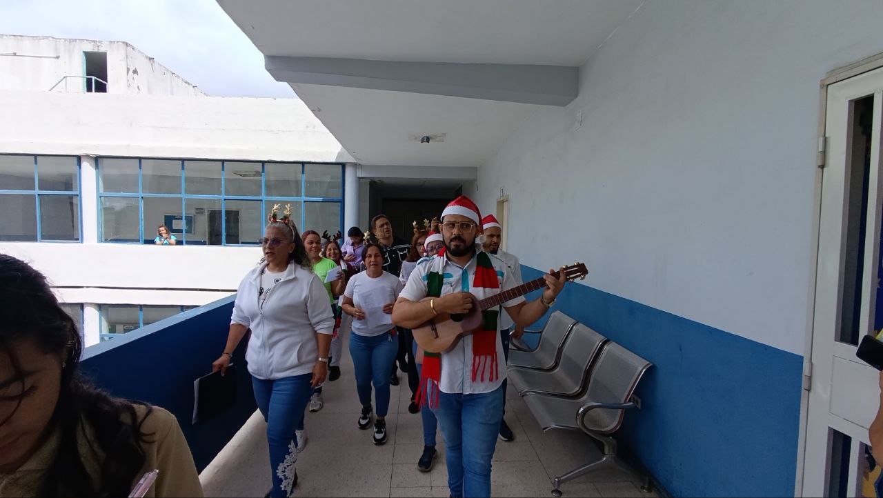 Los músicos fueron recorriendo los pasillos con canciones como “Mi Burrito Sabanero”, “Son mis deseos”, “Precioso Querube” y Aguinaldo Carupanero”, con las que animaron a los trabajadores y autoridades de la institución para bailar, cantar y caminar con ellos durante la parranda.